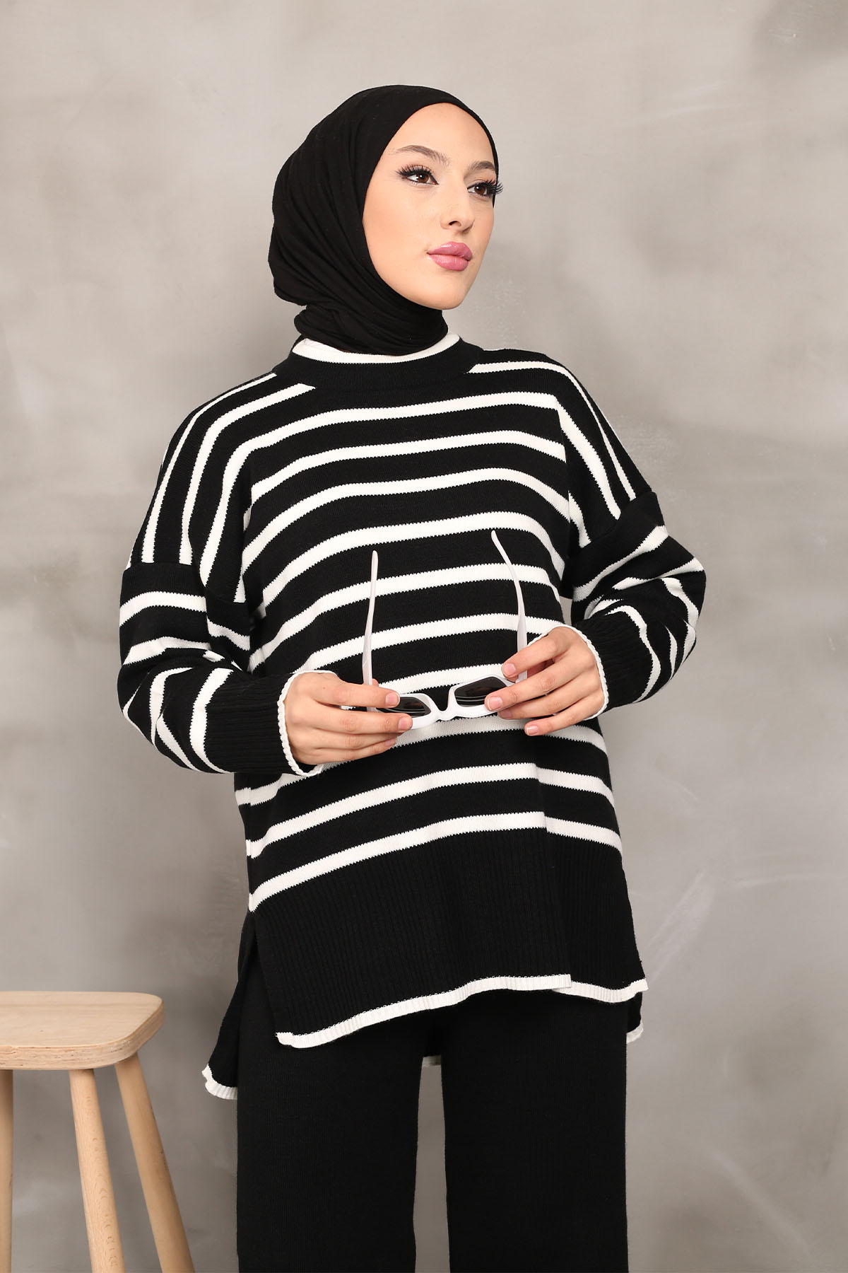 Siyah Çizgili Triko Takım